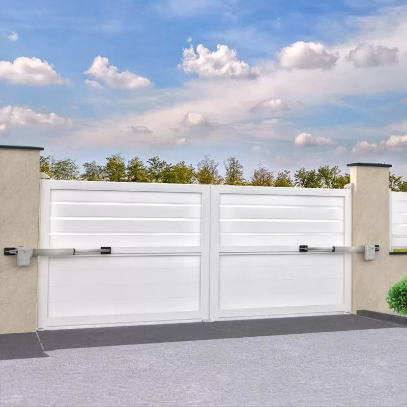 - Ouverture à la française : Composés de deux vantaux, nos portails battants offrent une ouverture élégante et pratique, idéale si vous disposez d’un dégagement suffisant.